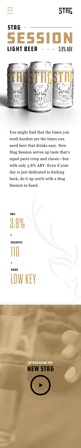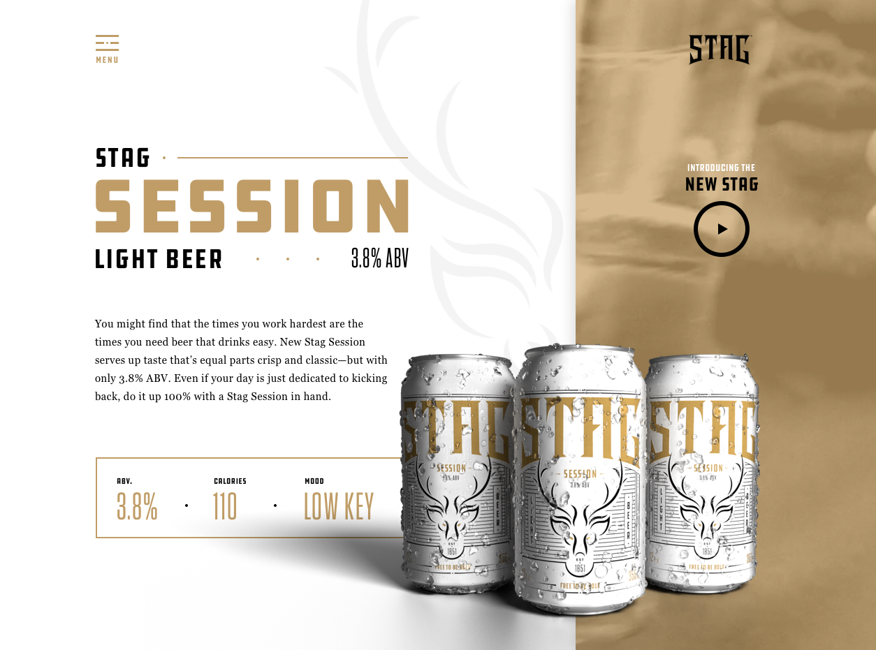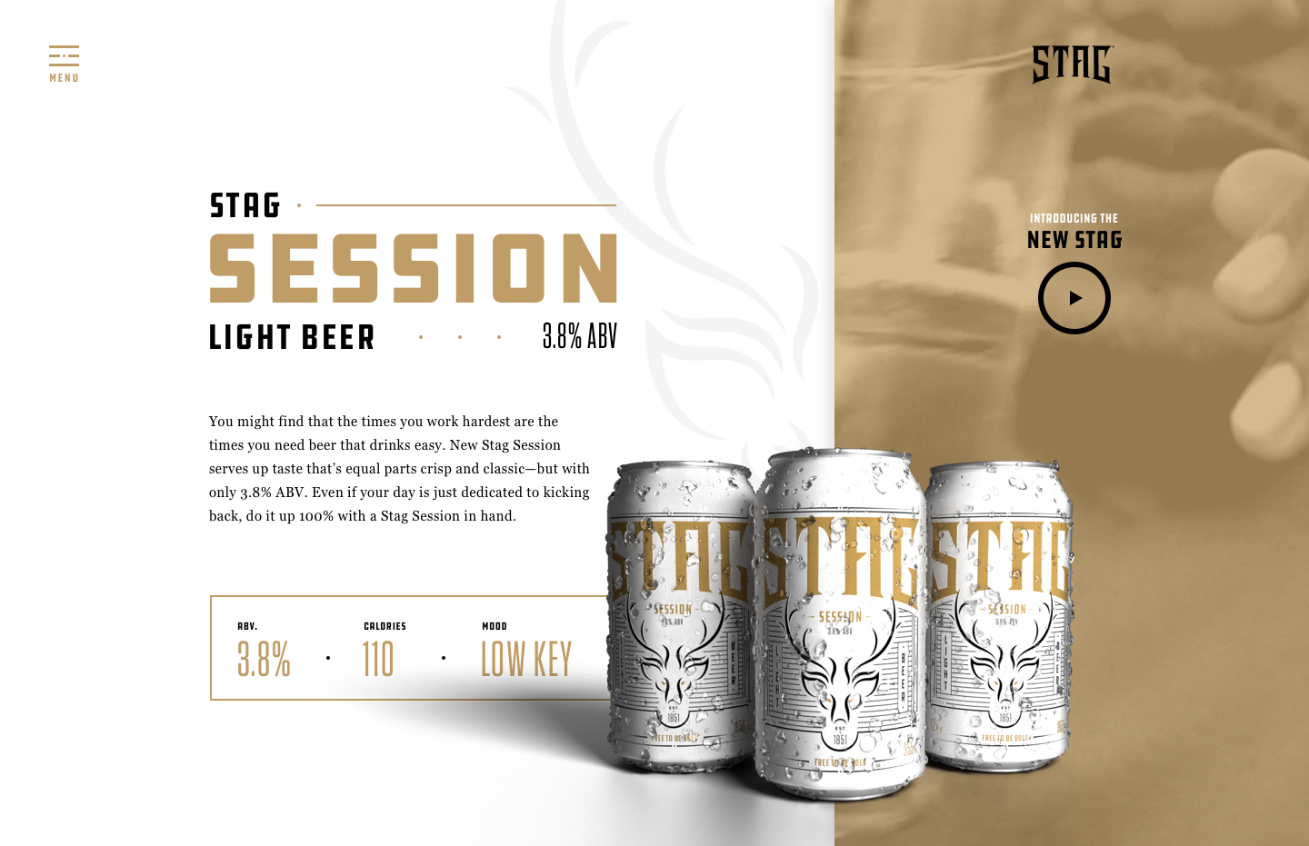 We’re re-introducing Stag to the market in a bold way. A new brand identity and brand platform gives us the opportunity to appeal to our existing loyal audience while attracting a bolder generation of Stag drinkers. The folks we're talking about spend a significant portion of their time online and appreciate an authentic brand experience. It’s critical that a consistent experience is felt from can to billboard to their digital world. Through a clear and easy-to-use website, this new audience can access information about Stag’s new brand, product launches and content.